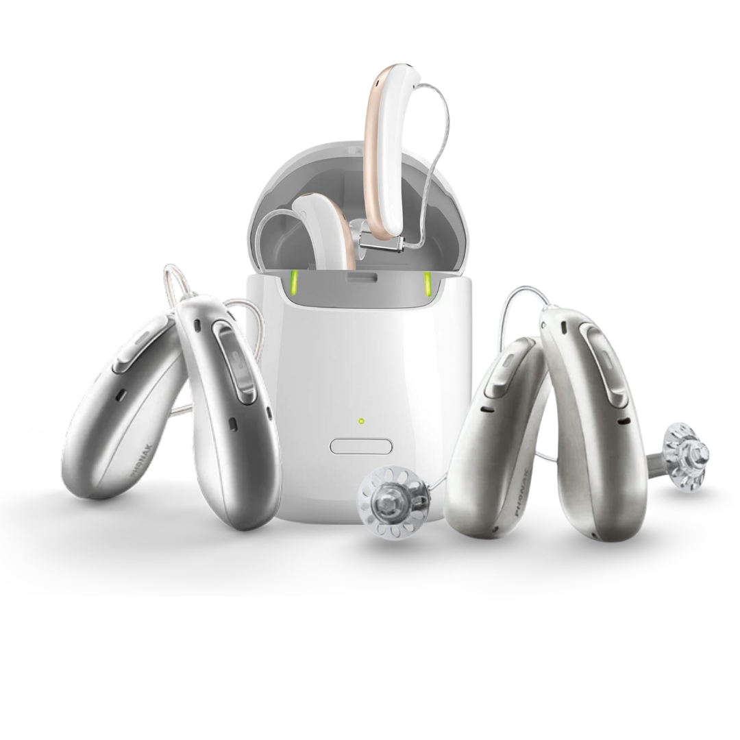 Access to multi-brand digital hearing aids with Bluetooth, noise reduction, AI features, rechargeable batteries, and real-ear measurements for natural sound.